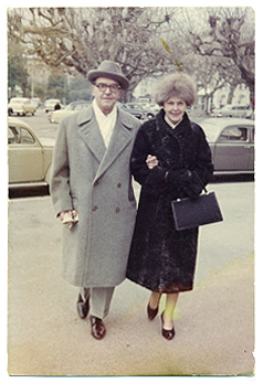 Abschied von seinem Adoptivsohn, der in die USA übersiedelte, 1956